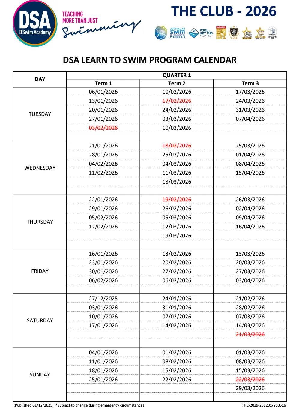 PROGRAM CALENDAR (LTS)